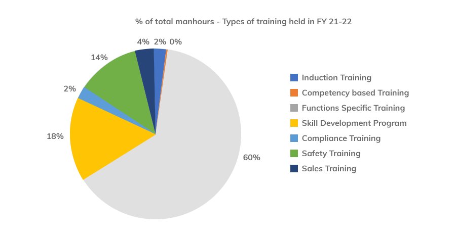 Compliance Training - This is designed to brief employees about key aspects of policies covered under compliance training (Code of Conduct, Code of Conduct for Affirmative Action, Whistle Blower, Appropriate Social Conduct at Workplace, Health-related Ailment Policy) and queries related to the policies are addressed. Awareness is also provided on grievance and complaint redressal mechanism.