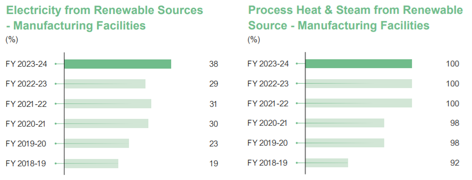 from DG set and electricity from renewable energy sources at respective manufacturing facilities.