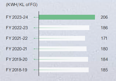 | GRI 302-3 | Energy intensity | Energy Intensity: 1.5 GJ/KL of FG Sp. Power Consumption: Manufacturing Facilities 206 KWH/KL of FG Sp. Fuel Consumption: Manufacturing Facilities 54 LT/MT of Resin |