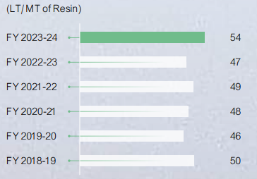 | GRI 302-4 | Reduction of energy consumption | Sp. Power Consumption: Manufacturing Facilities 206 KWH/KL of FG Sp. Fuel Consumption: Manufacturing Facilities 54 LT/MT of Resin |