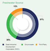 Our freshwater requirement is met through - groundwater, State Industrial Development Corporation (SIDC) water supply and third-party water supply.