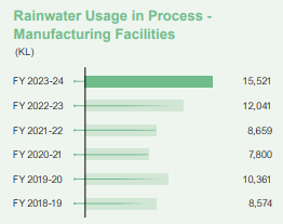 Our organization-wide total water consumption for the reporting period was 5,75,470 KL, of which 15,512 KL was rainwater while 1,34,814 KL was recycled water.